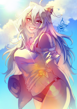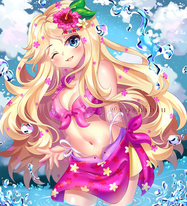 Rough full colour type commission for wreckitzero of their OC Lisbeth in a summer theme!