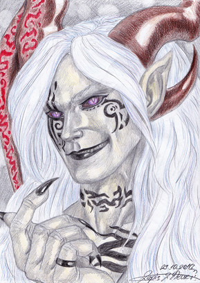 Thank you so much! Well, I have no merits for this, that's simply his colors. I agree it's a surprisingly nice combination and it works well with my part color technique, hehe. As for the face, yeah, I suppose having drawn a zillion human portraits pays off in the end XD Though drawing one without a physical reference is always challenging. But the wrinkles and horns do make it more fun XD