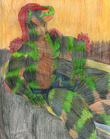 Pretty good stuff. ^^ I like the pattern on his back. A random question, though: is he or any of your reptilians cold-blooded? I ask because of the first comment which got me to think about reptiles basking in the sun to warm up since they're not warm-blooded.