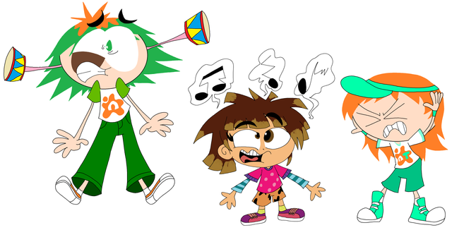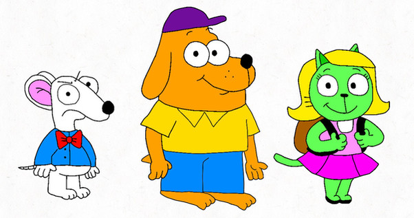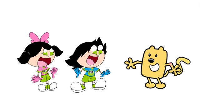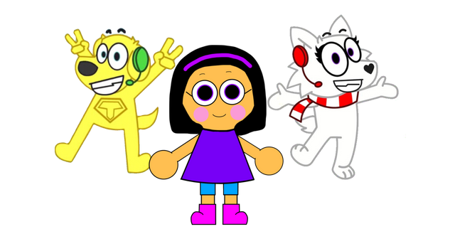The PBS Kids Go Twins are with their hosting canine buddy, Ruff Ruffman. Together, they host the show and challenge kids and teens. Also, this is my first time drawing Ruff Ruffman.Ruff Ruffman belongs to WGBH (now known as GBH)