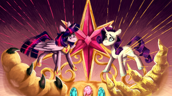 Girlfriend giving Rarity a lift. Really cute. Could at least give her a chair, Twi.