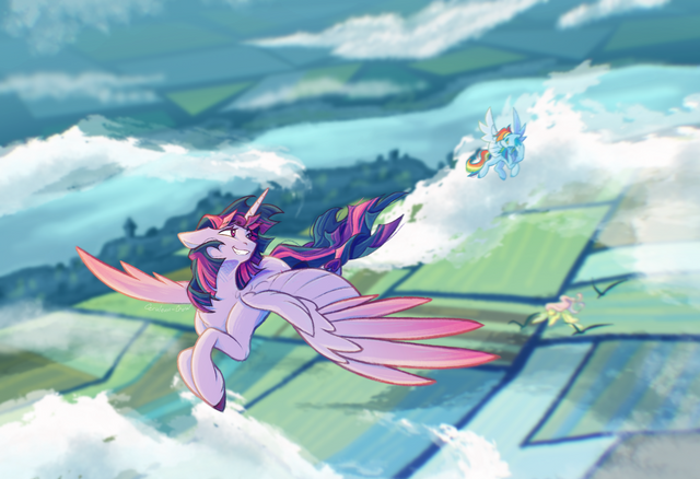 #anthro #digitalart #digitalpainting #ship #shipping #anthropomorphic #background #clouds #illustration #mlp #pink #mlpmylittlepony #twilightsparkle #raritwi #raritymylittlepony