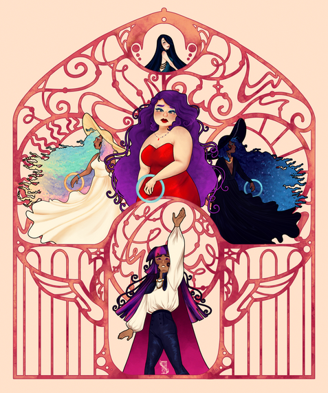 Therr isn't much to say about the Design process that I remember. I had yhe references on the side and just played around with it. Color was certainly the part that took the lingest to figure out, since I wanted something with a bit more complexity to it, but still wanted ti keep simple, so I could draw her Without a reference most of the time. And so far, I've forgotten very little of her design (for example this time I forgot what color the gradient on her legs was, oof)