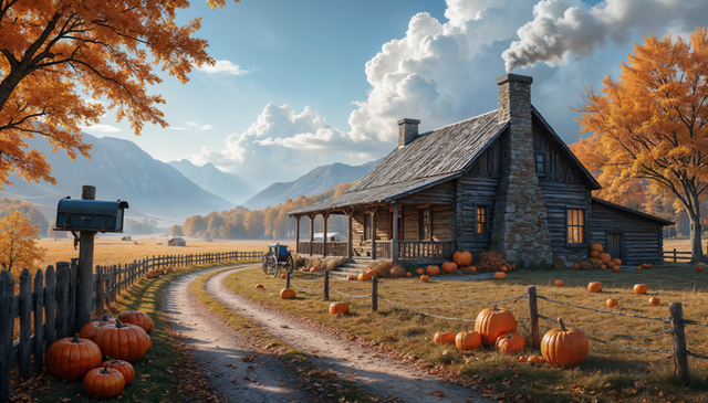 #architecture #autumn #cartoon #digitalart #digitalpainting #fallseason #forest #forestlandscape #forestpath #glitchart #house #logcabin #mountains #orangeleaves #pumpkins #room #seasonalart #wallpaper #warmcolors #water #woodencabin #naturescenery #rustichouse #autumnart #tranquilsetting #peacefulforest #countrysidescene #autumnvibes #cozyautumn #cozycottage
