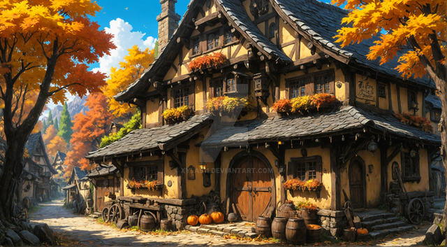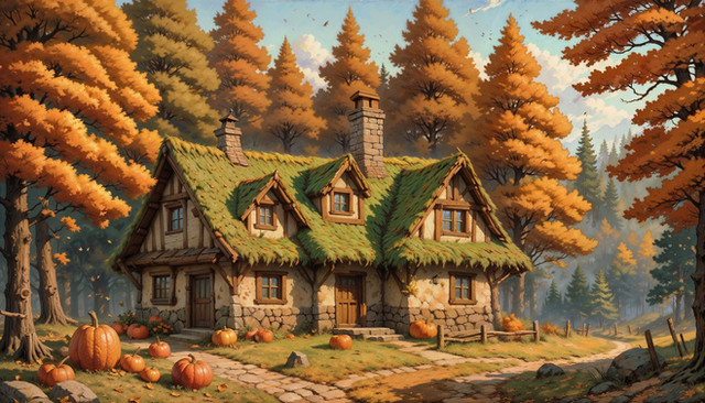 #architecture #autumn #cartoon #digitalart #digitalpainting #fallfoliage #fallseason #forest #forestlandscape #forestpath #house #logcabin #mountains #orangeleaves #pumpkins #seasonalart #wallpaper #warmcolors #water #woodencabin #naturescenery #rustichouse #autumnart #tranquilsetting #peacefulforest #countrysidescene #autumnvibes #cozyautumn #cozycottage
