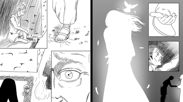 This is the experimental comic about Ancient Egypt, where ancient texts are coupled with a narrative fantasy. The dead man travels to the Afterworld and with all his sins and hopes he tries to get to the Chamber of the Two Truths, where the judgment of Osiris takes place.