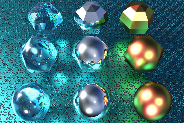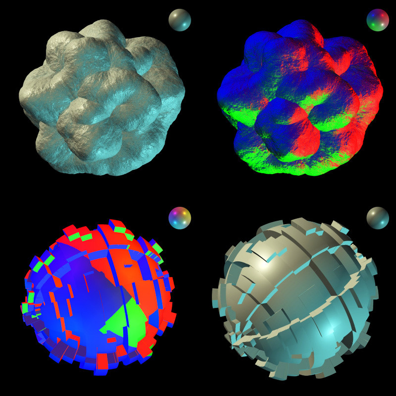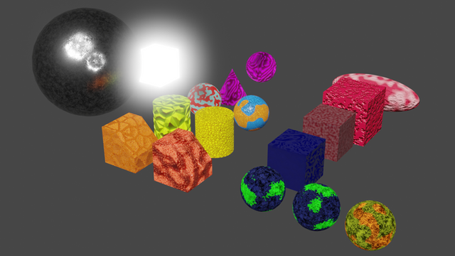 Procedural shaders written for Renderman for class. These don't use texture maps.Two are simple surface displacement shaders while the colorful ones use luminance loops to find the dominant light color.