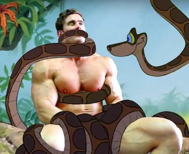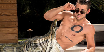 An green anaconda enjoying wrapping around this muscular bod.Related content