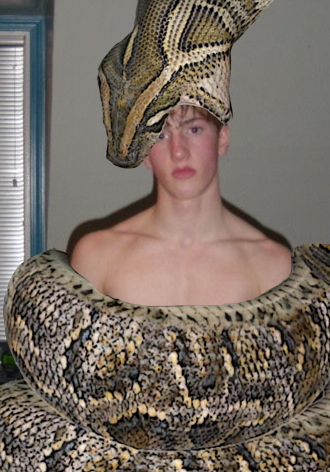 One of my favorites!Β I like seeing his smooth chest flex out as the snake constricts him.