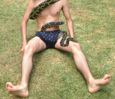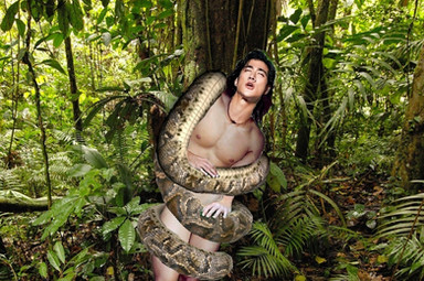 The guy not realize that someone wants him badly. The snake is just making sure he doesn't escape. That snake looks very content. He likes squeezing guys more for pleasure than anything else. After all he could eat a pig if he was hungry. But here is this guy that is so cute and has a great body. I'll bet he gets real tight fucks him with his tail, tightens even more. The snake starts sucking his dick and gets so tight they both cum.The snake would want to show the man affection. He might get so tight the guy passes out. Nut he would awaken smiling.