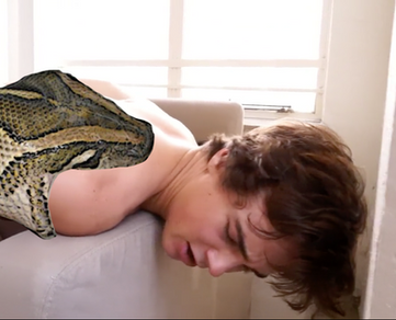 Well, if it were me in the chair, the snake should get some coils around my legs and bind them to the legs of the chair. I think both the snake and owner would appreciate having every part of me stuck. All I would be able to do is flex against the coils as I endured the torture the owner put me through.