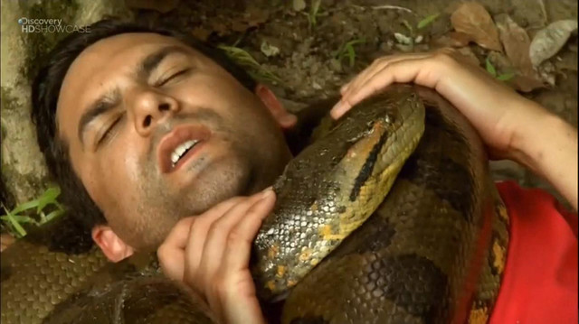 surprised by the snake he was attacked. The fight continues, but who might win?! A 6 feet tall hunk or the 15 feet Long Snake?Related content