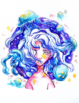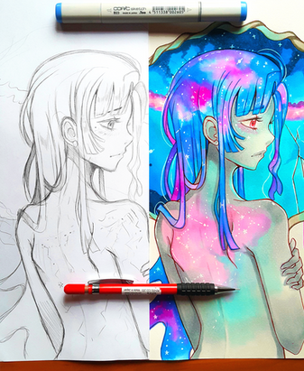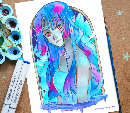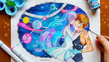 #anime #conceptual #copic #cute #emotional #galaxy #manga #moon #space #stars #traditional #universe #watercolors #larienne