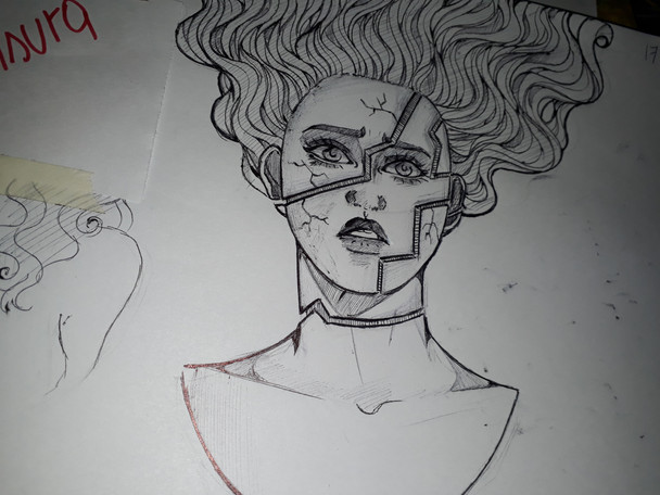 Beautiful job...although I would have named this 'shattered'. With her sad expression it would seem she had had her heart broken numerous times and this is the way she sees herself when she looks in the mirror. Perhaps others with a good heart might see it too. But perhaps one day a good gentleman would come and see her for she is and will properly care for her and lover her healing the cracks and scars in time.
