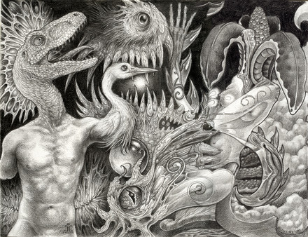 In Celebration of Alice in wonderland.acrylic on masonite, fiber and glue