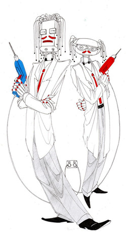 conceptually this is totally kick ass- the machine heads are just the right amount of creepy and off-beat kitsch, and their nostalgically stylized limbs are quirky and a great fit with the "tada!" feel of the piece. bravo.