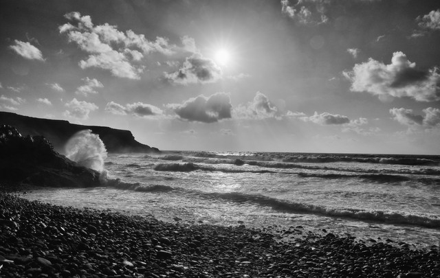 I love the epic feeling here, and the B&W fits well with the mystery often associated with the coast. Could be straight out of LOTR or "The Fog".