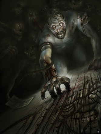 The colors fits to the background, The Dream reaper looks scary enough. It looks like he is all meat and bone, and lost his skin, maybe because of all the sick dreams people have