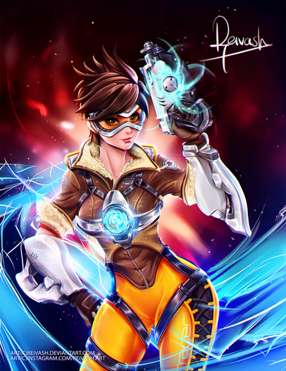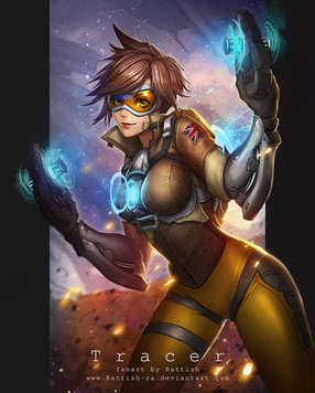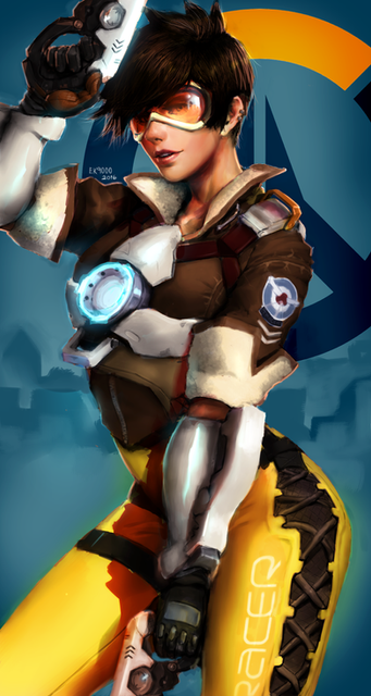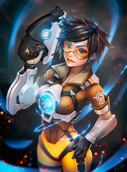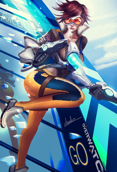 #female #game #headphones #orange #tracer #gunholster #thander #overwatchfanart