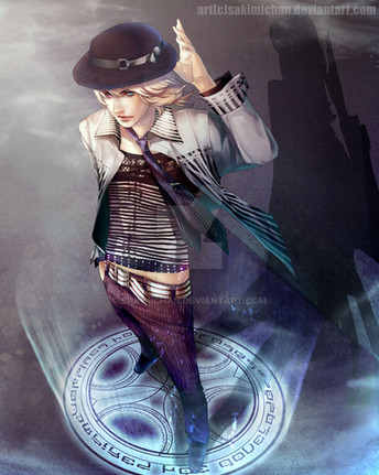 B: Wow! I love the angle of this picture. Everything about this picture is all tipsy! His lower body is twisted one way, his upper body the other way, then the background can either be looking up from the bottom of a tower, or maybe he's jumping onto a shelf in the library; this picture's amazing and has the best proximity angle I've seen!