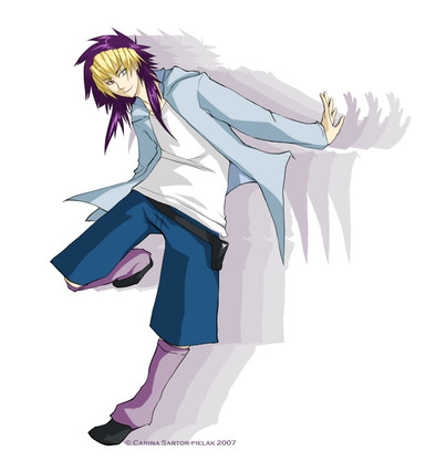 character - Junji ( my own ) can be seen with his hairin a pony tail [link] and more normal cloths XD;;