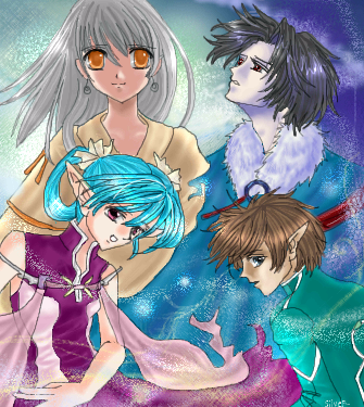 hm.. Such a beautiful picture. Lumina's (I think that's her @O@; ) pose seem's a bit too off. ^^ This really is a neat picture. The outfits are really pretty.