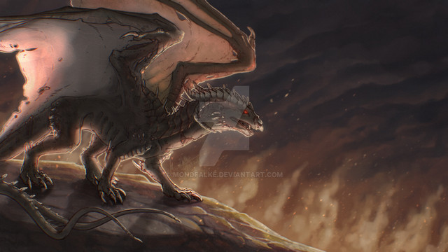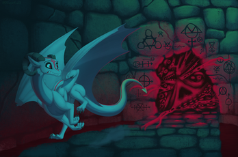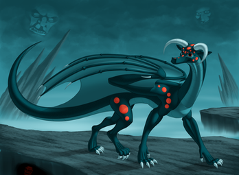 Decided to bring this dude back! He's no longer a simple-minded beast, but now an intelligent being who is capable of speech! His silly red polka dots are gone too!This piece reeeaaaaally kicked my teeth in. Not the most inspired composition, a lot of the work went into his anatomy. If anything this piece is kind of a glorified anatomy study. But I did learn a lot, it should make drawing more organic dragons in the future a little less difficult.