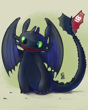 After you made that first Toothless drawing, this one was bound to come. One of the most adorable dragons in existence! He looks really cute in this one. (But still, what is that face on his tail.)