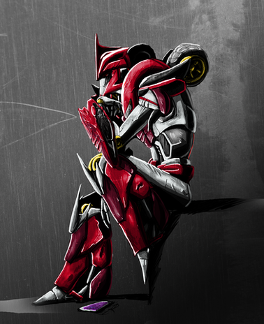 He went to go investigate. Normally, Knockout would wake Breakdown up to go with him, but his friend was a heavy sleeper who did not take being woke up easily. Walking to see the cause of the noise, he asked some vehicons who were on patrol if they heard it. Both vehicons had no idea what he was talking about. As Knockout turned around the corner of the hallway, the sound only got louder and louder. Whirrr. . CLANK whi
