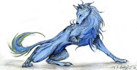 This is my newest - or second newest - wolf character at Paragon [link] named Emblem Eclipse. Emblem is a Uiscen, a water wolf, and at this current time the only water wolf in existence with some resemblence to how the Uiscens are supposed to be. Confused? Let me explain.In the world of Paragon, there are many elements. The main ones being Earth, Water, Fire, Air and Spirit. Then Lesser elements were made, Dust, Lightning and even Shadow/Light.