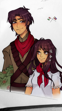 ENGLISH:I´ve been few years in the Hetalia Fandom, this means I've been in the Latin Hetalia fandom too and because all the things they share (in real life) I got to ship Mexico and Colombia so hard and there weren´t enought fanarts of them. So, I have a Mexican friend and we did this collab. I puted a lot of efford ´cause look at it, ITS PRECIOUS.