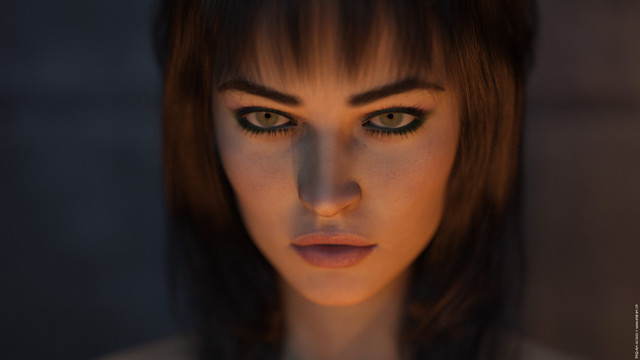 Thank you very much... This was an unplanned upload, as it is close-up from a different scene I was working on at the time. And you are spot on... Once I saw that angle and her expression I just had to make a separate image... Thank you!