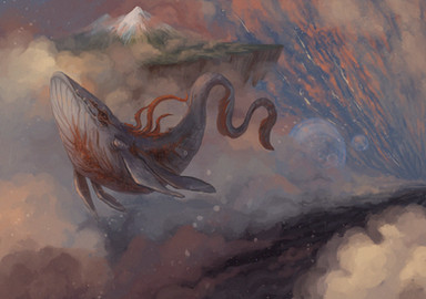 #blue #clouds #conceptart #digitalart #drawing #fantasy #flying #ghost #gold #illustration #landscape #majestic #ocean #painting #rocks #scenery #skeleton #sunshine #whale