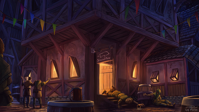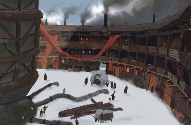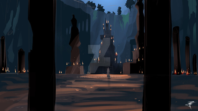 #banners #building #castle #conceptart #digitalart #drawing #fantasy #illustration #interior #knight #landscape #painting #pillars #ruins #scenery #speedpainting #sunshine #wood #traininggrounds