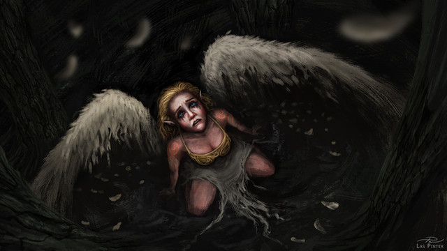 #angel #atmospheric #bracers #characterdesign #church #conceptart #darkfantasy #digitalart #dirt #drawing #environment #fallenangel #fantasy #illustration #painting #pillars #red #redhair #ruins #scenery #stones #wings #layingdown