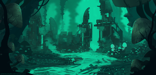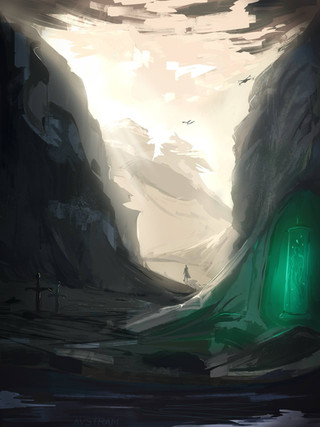 #atmospheric #clouds #conceptart #darkfantasy #digitalart #drawing #fantasy #floating #glowing #green #illustration #landscape #painting #rock #scenery #sky #stone