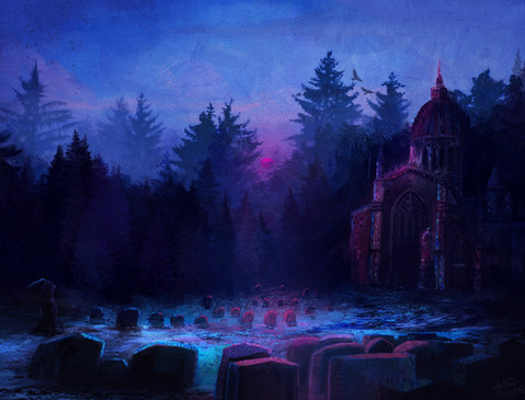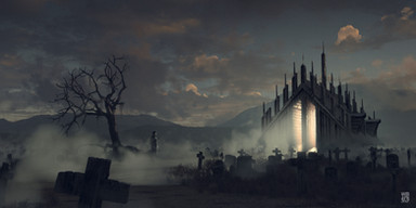 #atmospheric #building #clouds #conceptart #darkfantasy #digitalart #drawing #fantasy #graveyard #illustration #landscape #painting #pathway #ruins #scenery #speedpainting #stones #tree