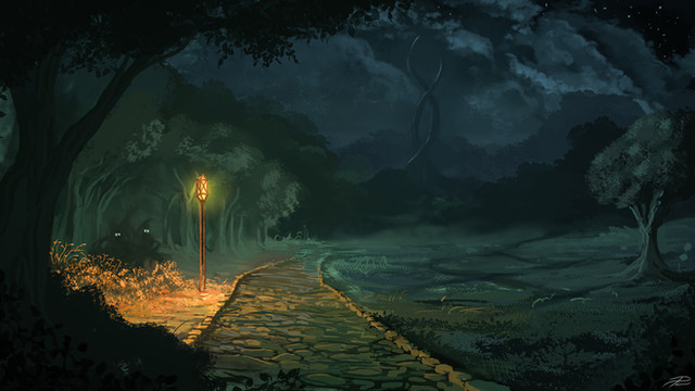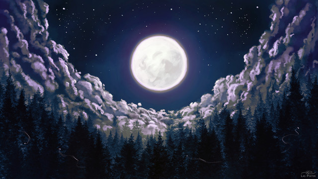 #atmospheric #clouds #conceptart #darkfantasy #digitalart #drawing #environment #fantasy #forest #glowing #illustration #landscape #moon #night #painting #river #scenery #trees #water #waterfall