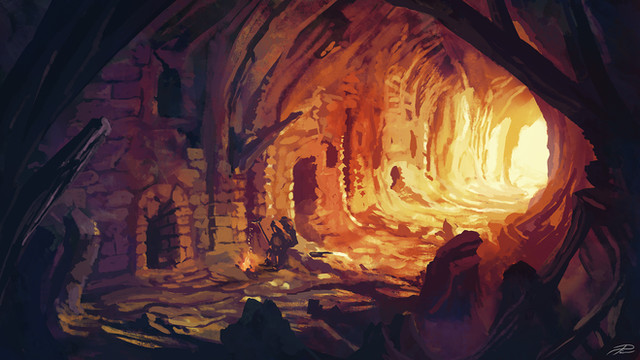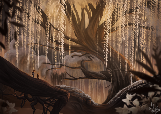 #adventurers #atmospheric #clouds #conceptart #digitalart #drawing #fantasy #forest #glowing #grass #illustration #landscape #meadow #orange #painting #scenery #sunshine #trees #vines #yellow