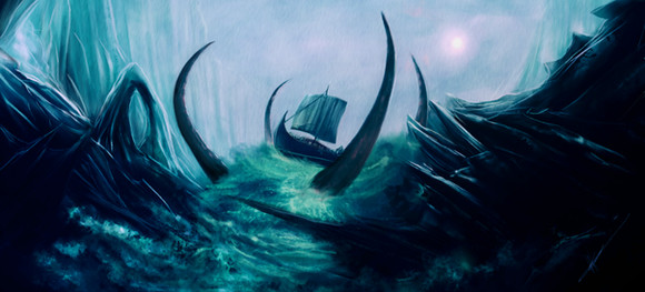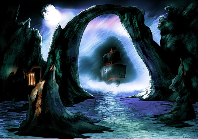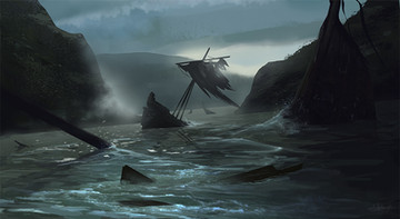 #atmospheric #boat #conceptart #creepy #darkfantasy #digitalart #drawing #fantasy #glowing #illustration #painting #reef #rocks #scenery #ship #speedpainting #stones #vines #water