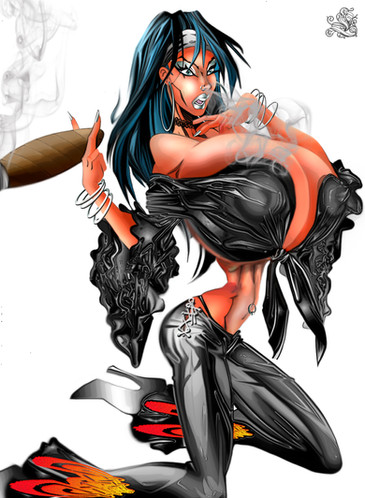 Oh dirty pleasures.She looks as if she has really been worked over.This excites me and the stylized cigar smoke is boss.