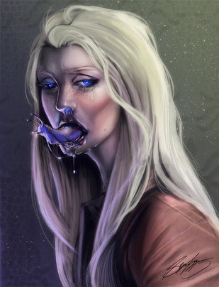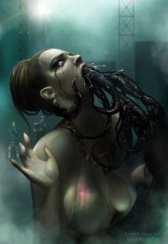 Since long time ago I have a project in mind, a dark and sexy version about the adventures of Alice in Wonderland. My character named Malice is better for her gothic look and the strange world than she goes is Whoreland, you can imagine why.This drawing shows the moment in which she is eating something that will transport a few surprising results in her anatomy.