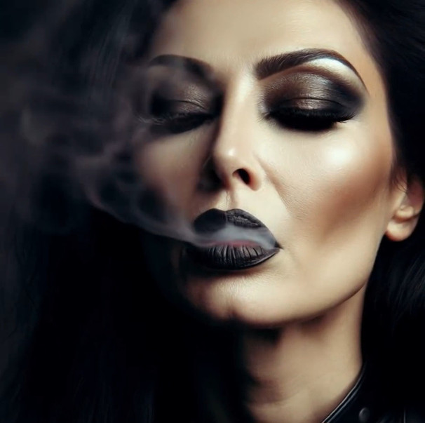 French inhale... or Spanish inhale in this case. Dedicated to my friend and fan of the smoky plumes and also to my dear who loves my silver lipstick.Silvery and smoky kisses for everyone.