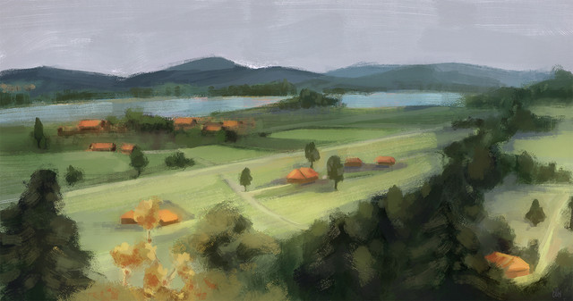 #art #digitaldrawing #digitalpainting #drawing #fantasy #forest #hill #house #landscape #nature #painting #trees
