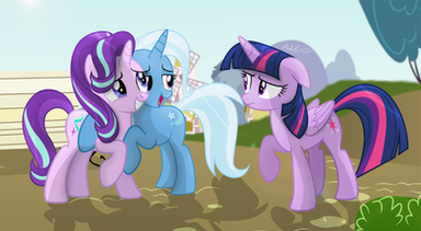 Normally I planned to make a Starlight and Trixie wallpaper, but then I thought what if I add Twilight and Sunset in the mix too, so I ended up with this. Hope you like it!The wallpaper is available in: 3840 x 2160p64bit