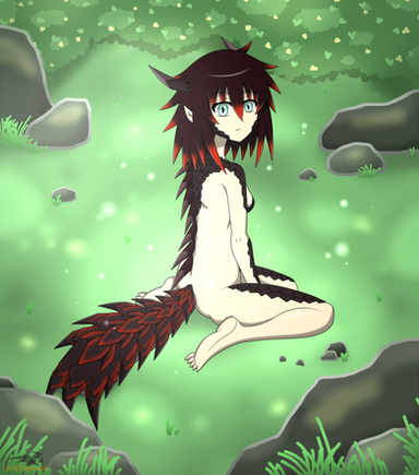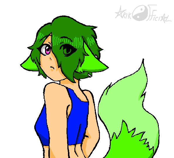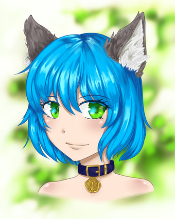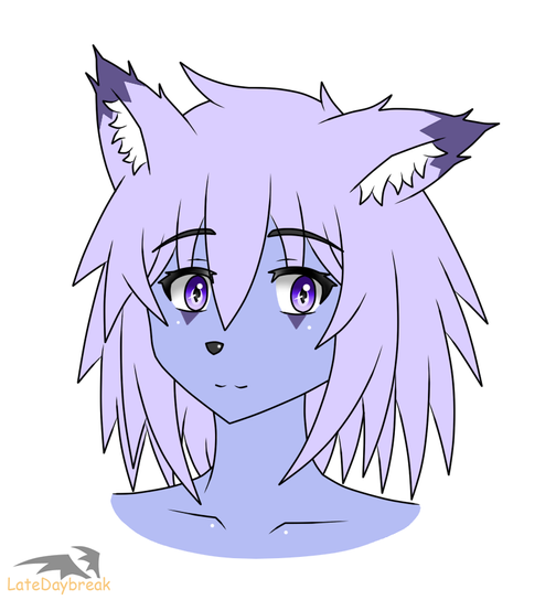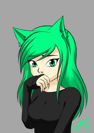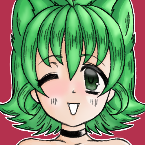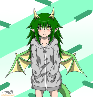#anime #anthrogirl #ears #flatcolor #green #greeneyes #greenhair #greenskin #headshot #wolf #kemonomimi #latedaybreak