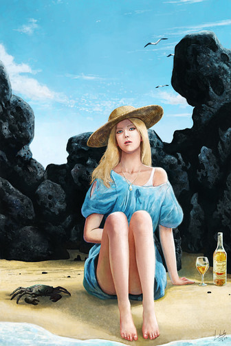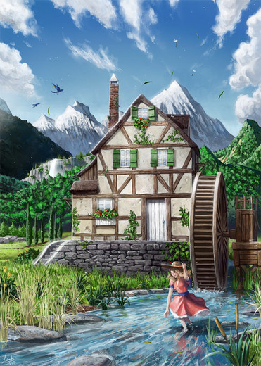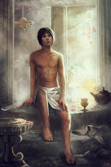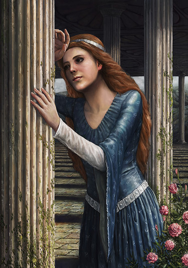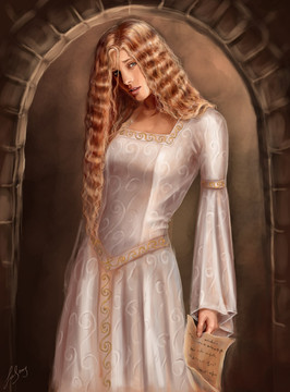O: Another beautiful piece. What is happening with the fire? Is she producing it from her hand, or is it perhaps graffiti on the wall? Anyway, this is a warm, sunny feeling piece. I love the feeling from this!