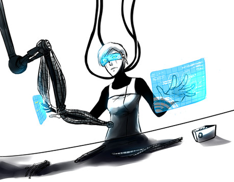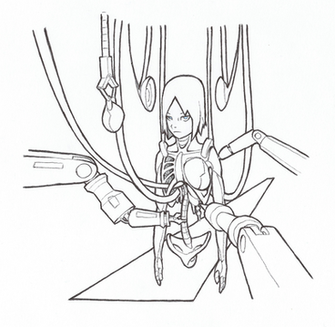A little version of a Humanoid GLaDOS I thought up. I was influenced by ~MadameDove and her humanoid Wheatley~---