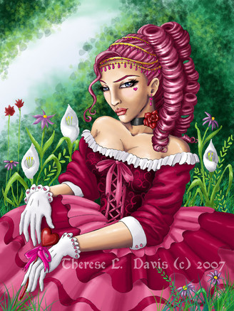 this was a piece I've been working on since Comic Con. I've been seeing the whole Victorian dress thing everywhere and I just had to experiment with it. I know the perspective on the picture is a little skewed, but I kinda let that go after awhile. But it was still fun, tried different things. The hair was a lot of fun, so was the dress.© Sonjalee Holland