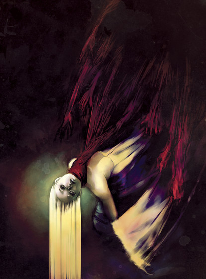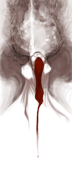Lovethe concept, colouring and design! The blood and the background colour works very well!